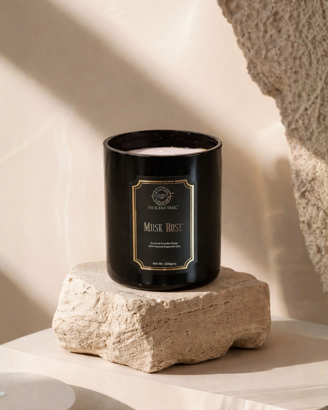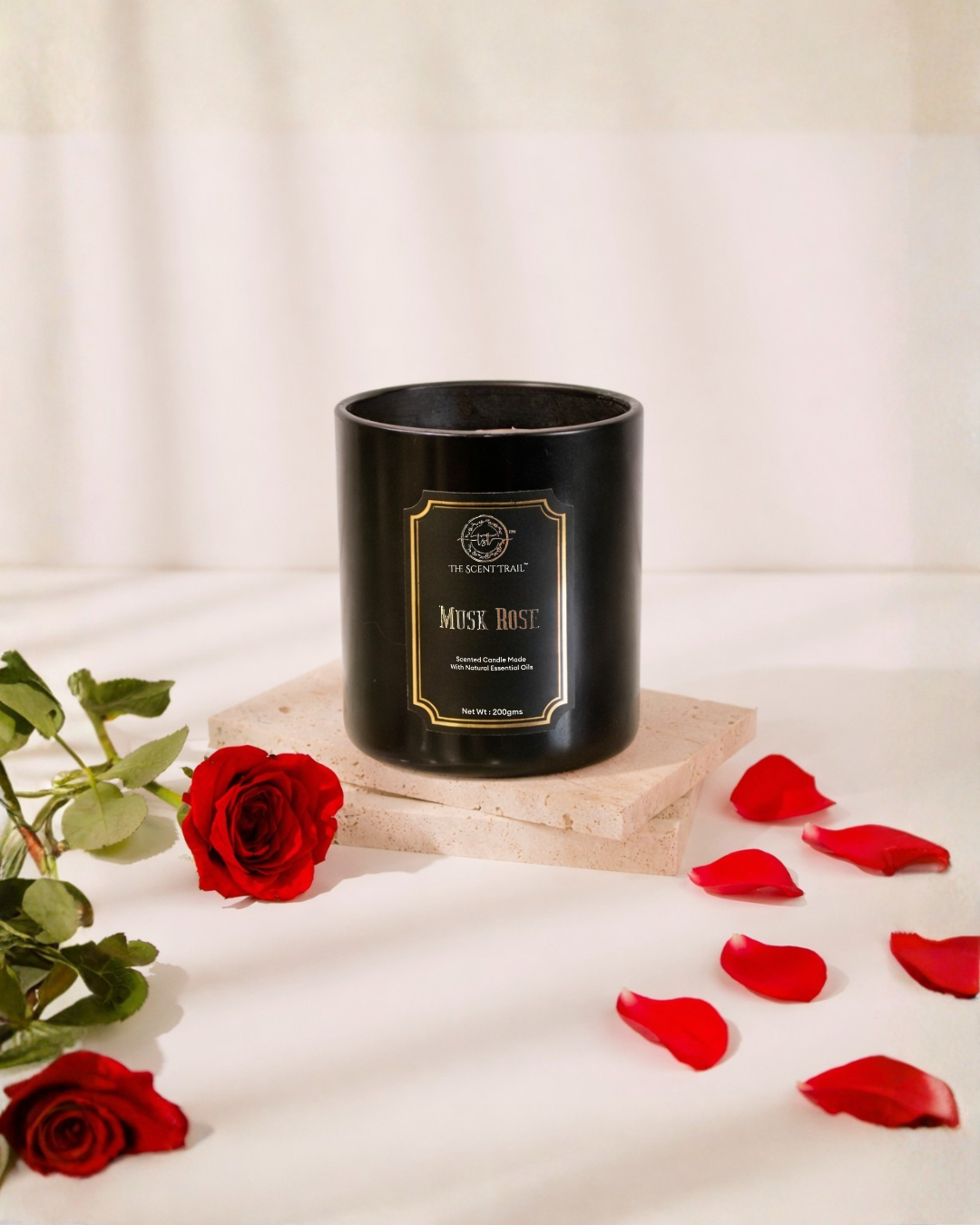 Step into a world of timeless romance and mystery with The Scent Trail’s Musk Rose Candle.