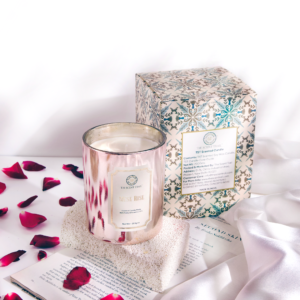 This luxurious candle blends the delicate elegance of blooming rose with the sensual depth of warm musk, creating an aroma that is alluring, sophisticated, and unforgettable.