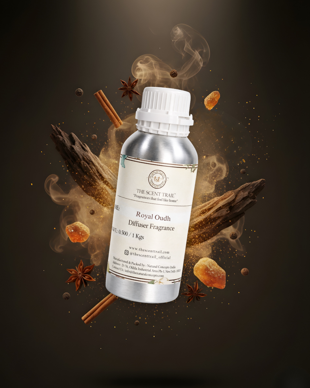 A rich and commanding expression of Oudh, crafted to evoke depth, heritage, and quiet grandeur. Intense woody accords are layered with warm oriental nuances and balanced with saffron and Raspberry hints creating a fragrance that feels both bold and refined. As it unfolds, TST Royal Oudh fragrance elevates the air, transforming the space in a quiet, refined luxury that feels effortlessly exquisite.